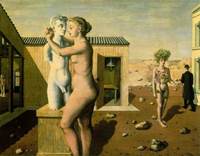 Paul Delvaux is a Belgian Surrealist painter. Influenced by Magritte, but with a very personal style
