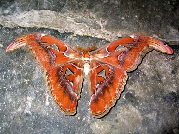 At the back of the bungalow Mr Guna had placed a strong light, which attracted hundreds of moths, some of them huge ones, like this Atlas Moth (can reach about 20-30 cm wingspan)