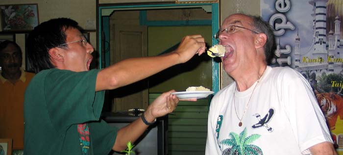 Eating the cake. Have a close look at Aric's face, while he is feeding me.