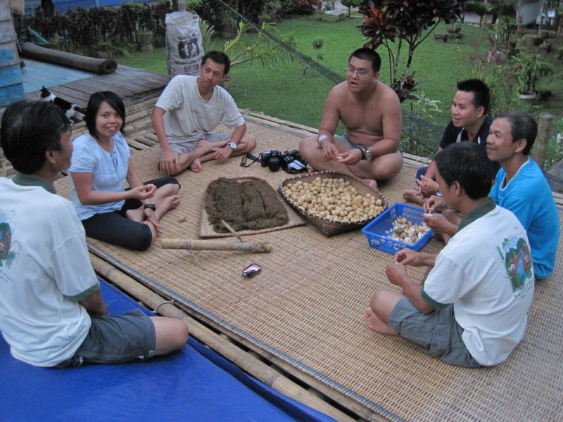Sagen to the left. Delicious fresh langsat fruits. Notice the Bidayuh waterpipe