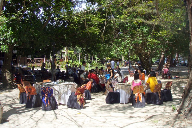 The beach dining room of the Manukan Island Resort, a failed attempt to create a posh atmosphere on the beach