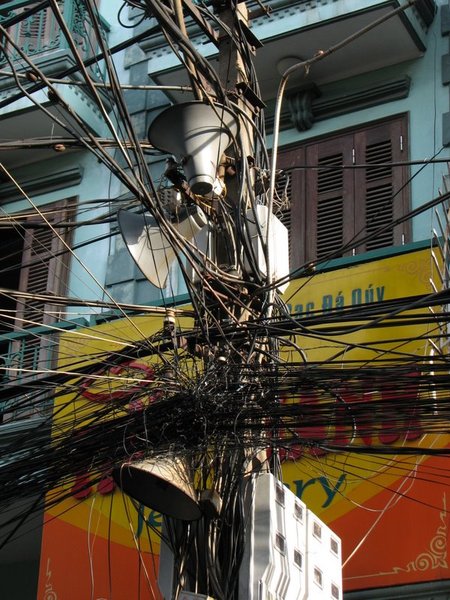 Hanoi Haywire * The electrical wiring system in Hanoi is fascinating... Cables everywhere. The loudspeakers give the news every morning... this is still a communist country...
