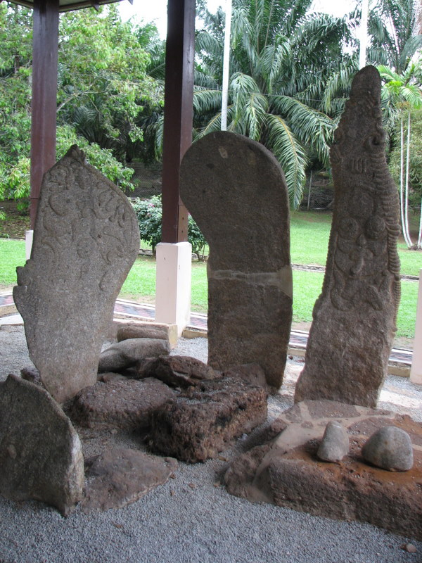 I reckon the megaliths are a new addition to the site, that's why Isabella didn't mention them. Tourism Malaysia has a liking for moving megaliths and putting them artistically in new unrelated places....... remember those next to KL railway station which appeared 'overnight' ?