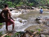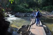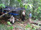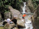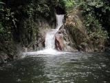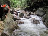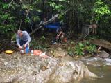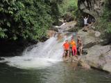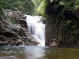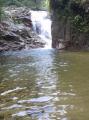| The first time I visited Sg Luit, was in January 2010, with my friend Keong. In 1943 Spencer Chapman had crossed the main range, from Bentong to KKB, following the Repas and Luit rivers. We wanted to find out if there was still a trail and of course I was also looking for new waterfalls..:-) We found a clear trail and several small waterfalls and cascades. See Following Chapman's footprints for a detailed report. A few months later we did a similar recce from the Bentong side, along the Repas river. Also there we found a trail, but it became clear that a crossing of the main range would be a major expedition. In December 2010 I went back to Sg Luit, this time with friends who had found several waterfalls further upstream! We started early from Kg Pertak and after a few hours trekking we reached the end of the trail near some cascades with a big pool. From here we had to do mainly river trekking, big boulders, not always easy, but very exciting. First we passed a very attractive small waterfall, after another half hour later we reached the impressive main Sg Luit waterfall. Huge pool! Pristine! Back home, combining GPS data with Google Earth, it looked like there could be other waterfalls just around the corner of the main Luit fall (red cross on GE screenshot) So I decided to go one more time and this time camp overnight as far upstream as possible, because it was too far for a day trip. On July 23 I left from Kg Pertak with Keong, Rani, Vincent, Ben and Jim. We were both lucky and unlucky. Lucky because we found that from the lubuk a new trail had been created to the main fall. No idea by whom. So no cumbersome river trekking needed! Unlucky because a heavy downpour started early that day and we had to set up camp before reaching the main fall. We found a suitable location near the small waterfall. The terrain was not level enough for tents, so it was good that we were all using hammocks. At the end of the afternoon the rain stopped, so we could have a nice dinner al fresco. The next morning after breakfast, a few of us continued to the main fall. From there we found a way up the right side. Slippery, scrambling, but it was not far before we arrived at a rocky slope with the next waterfall. Very satisfying experience...:-). This new fall again had a large pool. It was possible to scramble up at the left side. Above this fall there were more cascades and nice pools, before the river split into two streams. I think that the left stream must have been followed by Chapman. Probably in his days there were still logging roads. We could still see traces of it here and there, but very overgrown. The route probably followed by him, is indicated in red. He had to cross the main range at an altitude of ~ 1200 m! | ||||||||||||||||||||||||||||||||||||||||||