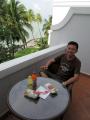 We arrived at the E&O hotel early afternoon and checked in. The E&O consists of two separate hotels, the Heritage wing and the Annexe. We had booked a suite in the Heritage wing. Checking in was already an experience in itself. We were invited to sit down in the lounge, where soon we received our welcome drinks. After a while our "personal butler" took us to our suite, about half the size of our Perdana View condo..:-). A sitting room, an elegant bathroom, a balcony with sea view Because of the car repair we had not taken our lunch yet and for a moment we considered calling our butler and ask him to provide lunch for us. But looking at the room service menu, we saw that two sandwiches with cool drinks would already be around RM 100. So we decided to go out for a while,where we found a Subway shop. We ordered two baguettes and drinks, "take away" and took them to our balcony...:-).